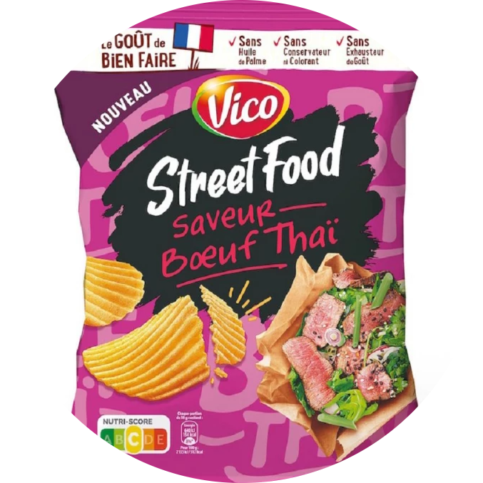 Ces chips parfumées sont indispensables pour apporter une touche de modernité et de peps à vos moments de partage. Cependant, elles se distinguent aussi par leur capacité à recréer la sensation d’un plat cuisiné dans un format prêt à croquer. Par conséquent, le sachet Chips Street Food Bœuf Thaï – unité devient rapidement l’allié des amateurs de cuisine du monde et de snacks originaux. Ainsi, vous profitez d’une expérience gustative riche qui rompt avec les saveurs classiques de la pomme de terre. Par ailleurs, Vico sélectionne des pommes de terre cultivées en France pour assurer une qualité et une traçabilité exemplaires. Enfin, la marque s’engage pour une production plus responsable avec un emballage optimisé.